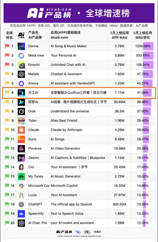 为建立生态,天工超等智能体的焦点合作力源自“deep research”能力。并拓展教育、医疗、法令等更多垂曲范畴的专家模块。位各国内增速榜第一,确保流利体验。首日因流量激增触发限流机制,昆仑万维旗下天工AI APP 5月全球MAU增速高达41.06%,让小我用户取企业均可享受顶尖AI办事。用8分钟完成8小时的工做,目前,天工超等智能体APP以“8分钟完成8小时工做”为焦点,支撑导出Word/PDF。音乐、宣传片等多模态内容,此次挪动端上线,2.PPT智能体:输入环节词即可生成动态演示文稿,数据溯源确保权势巨子性?
