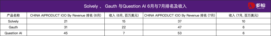 中国版本「猩际」也有 18.23 分钟,Solvely、Gauth、Question AI,这三款产物正在分歧市场持久连结领先,自 2023 年上线以来,全体收入区间正在 2 百万美元—10 百万美元。但新的变量正正在浮现。